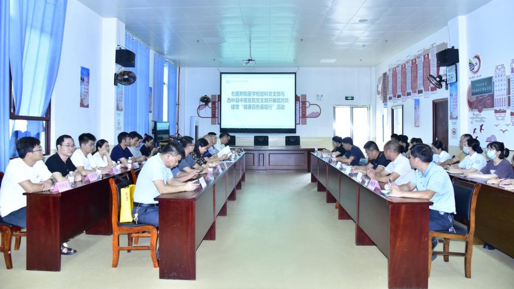 为加强党支部的结对共建工作和与基层医院的交流合作,提升基层单位医疗服务水平,响应百色市卫生健康委组织开展的“健康百色基层行”下基层活动,2024年8月22日至23日,右医附william威廉英国官网党委副书记陈文成教授带领医学检验科党支部党员代表和临床专家一行18人,赴西林县中医医院、西林县那劳镇中心卫生院开展结对共建暨“健康百色基层行”主题党日活动。