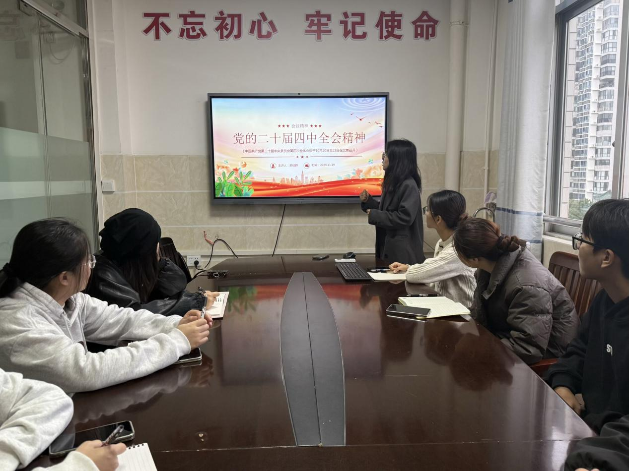 为深刻领会、准确把握党的二十届四中全会精神的丰富内涵与核心要义,引导支部党员自觉将思想和行动统一到党中央决策部署上来,2025年11月19日下午,william威廉英国官网员工第二党支部在7栋7楼会议室成功举办了以“深入学习贯彻落实党的二十届四中全会精神”为主题的专题党课。