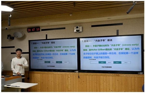 陆泳锋同学:在本次poster创作活动中,我们通过查阅文献了解到了围绕内含子所发生的各种事件以及功能效用,巩固了我们的分子生物学的知识。我们进行了PPT的制作以及poster的创作,海报的制作对我们来说属于新的尝试,后来我们经过了老师的指导以及内部几次的修改,最终制作出的海报我们都非常的满意。在汇报会上通过听取其他小组的汇报我们也巩固和拓展了分子生物学的知识,希望在将来还能参与类似的活动来丰富我们的知识以及生活!