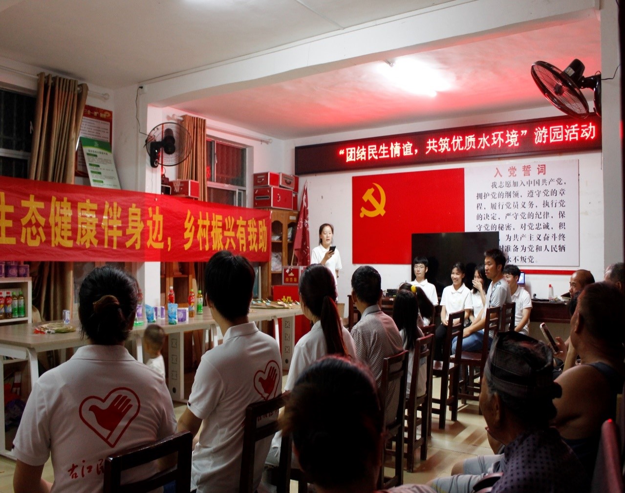 小分队成员参观新寨村草菇种植基地,参与水质调研和检测、走访入户进行高血压和血糖等疾病监测,建立健康档案、科普慢性疾病预治和饮用水健康安全知识、强调农业浇灌水对土质、农作物、对人体健康的影响宣讲、开展村道义务打扫、游园联谊共讲水质健康活动等,帮助村民关注水质状况,推动村民养成良好的用水习惯,更科学关注身体健康,以健康的体魄团结奋进乡村振兴新征程。