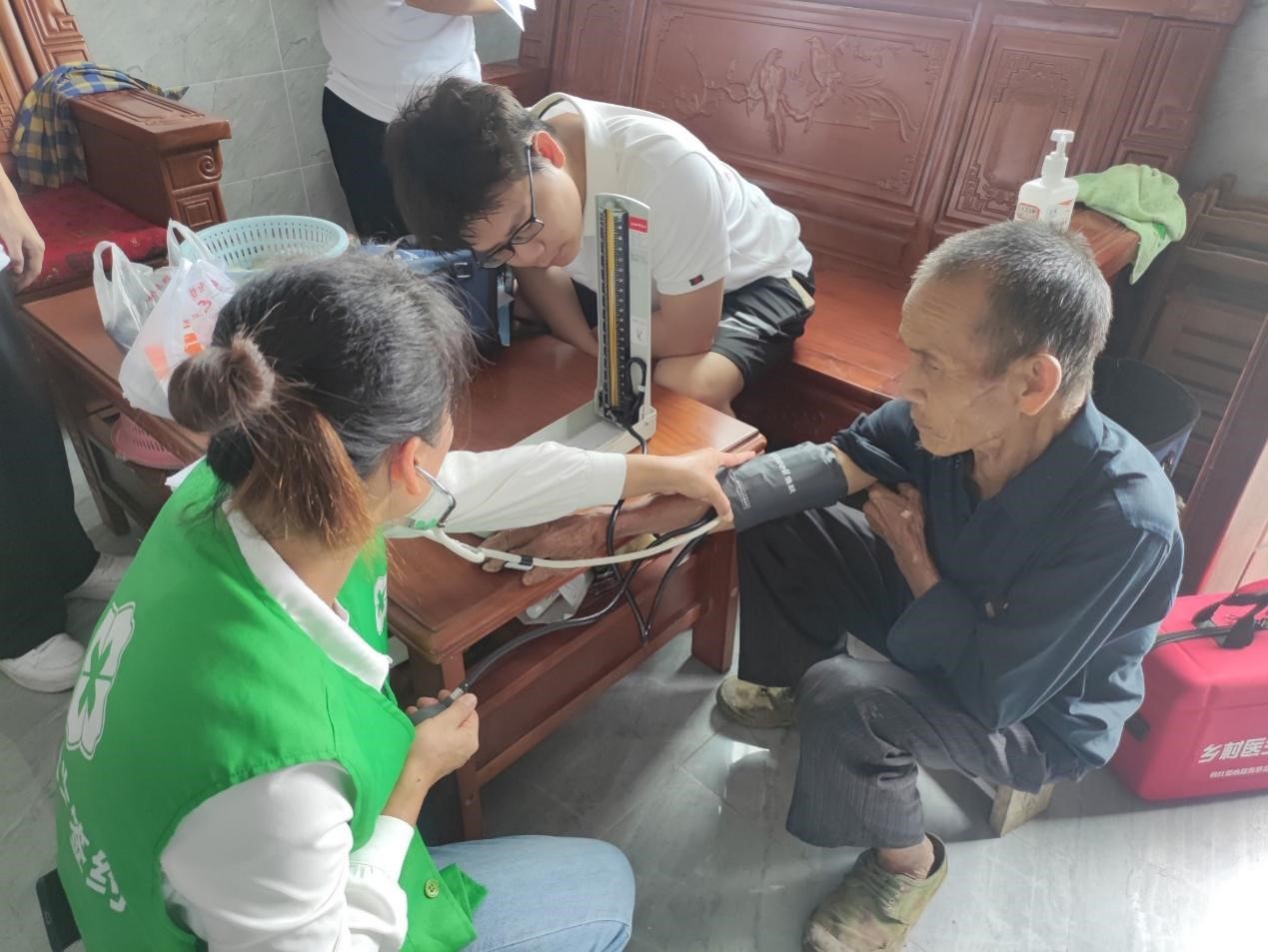 小分队成员在黄医生的带领下入户问诊量血压