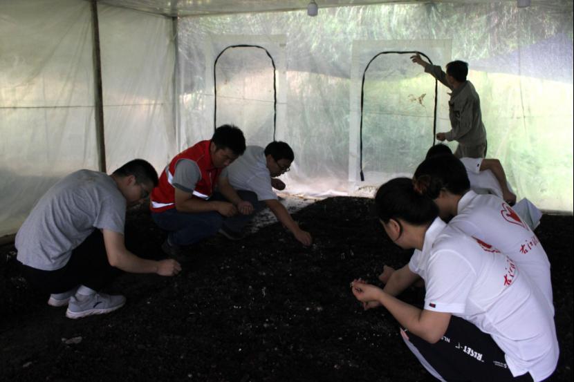 小分队成员对土壤进行采样