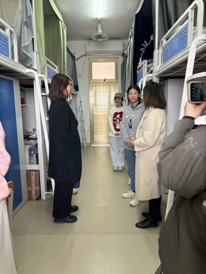 在走访员工宿舍期间,王俊利副董事长一行逐一查看了员工宿舍情况,并与员工亲切交谈,了解他们在百东校区学习和生活情况。同时,还对员工公寓的卫生、安全等情况进行了检查,并提醒同学们要增强安全意识,注意各类安全问题。