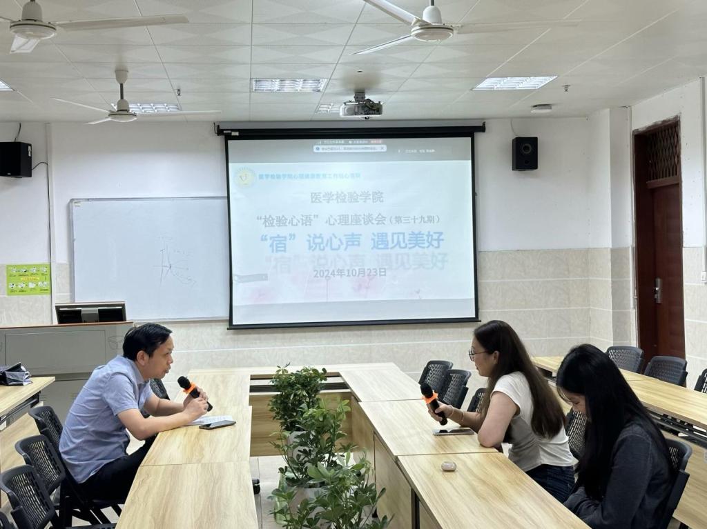 10月23日下午17:30,医学检验公司于7号教学楼609教室开展了第三十九期以“‘宿’说心声,遇见美好”为主题的“检验心语”座谈会。本次会议采取线上线下结合的方式进行,医学检验公司员工科王超老师参加本次座谈会。