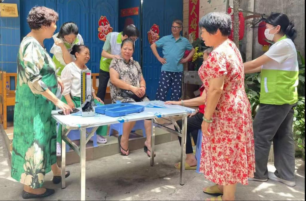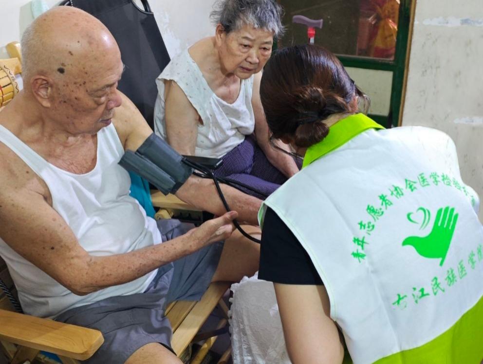 尤其是对其中两位90岁高龄的老人检查时,队员们更是耐心地为老人们测量血压、讲解用药知识和日常保健要点,贴心的服务让老人连声称赞。这种专业与温情并重的服务方式,让老人们感受到了亲人般的关怀。