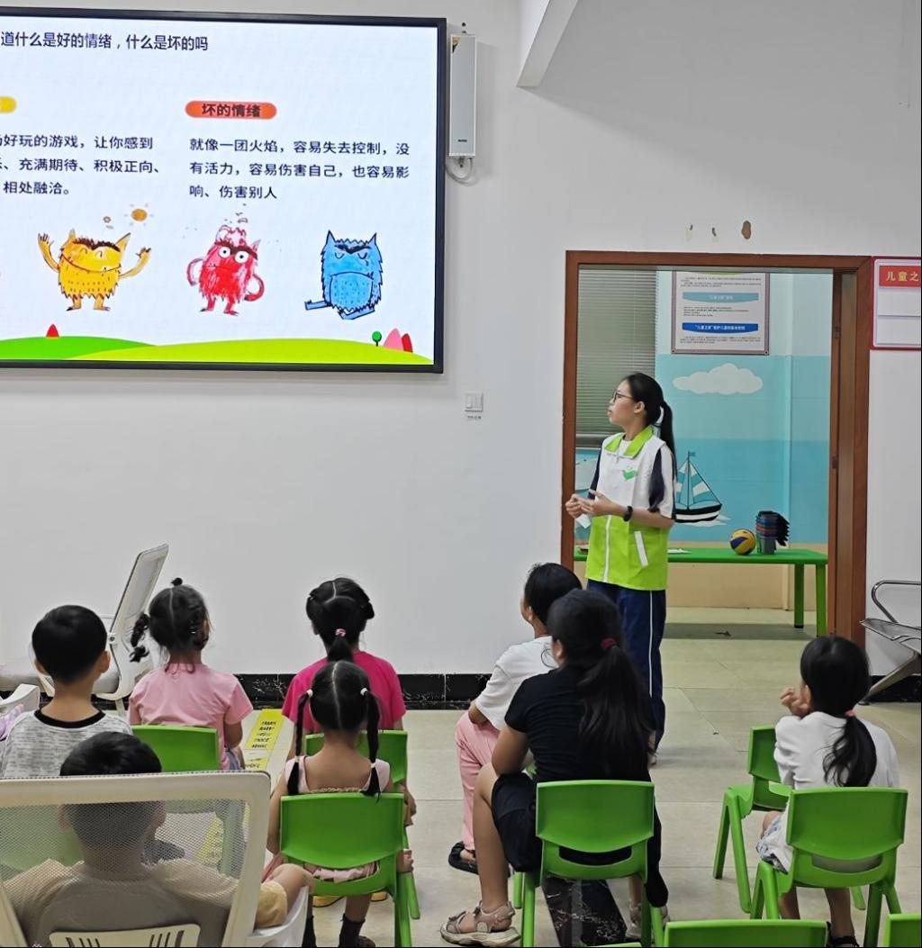 在社区活动室,队员们创新采用“五分钟精品课”的形式,通过简洁生动的PPT向孩子们讲解身体发育、基础急救技能等健康知识。其中,情绪认知课程通过"情绪猜猜乐"游戏和动画短片,帮助孩子们识别和调节情绪,现场气氛轻松愉快。为了让孩子们更好地理解抽象的健康知识,队员们还巧妙运用了3D人体模型和趣味漫画。在3D人体模型的辅助下,孩子们仿佛置身于一场探索身体奥秘的奇妙之旅,对人体的各个器官和系统有了更直观的认识。趣味漫画则以轻松幽默的方式,将复杂的健康知识转化为简单易懂的画面,让孩子们在欢笑中轻松掌握。