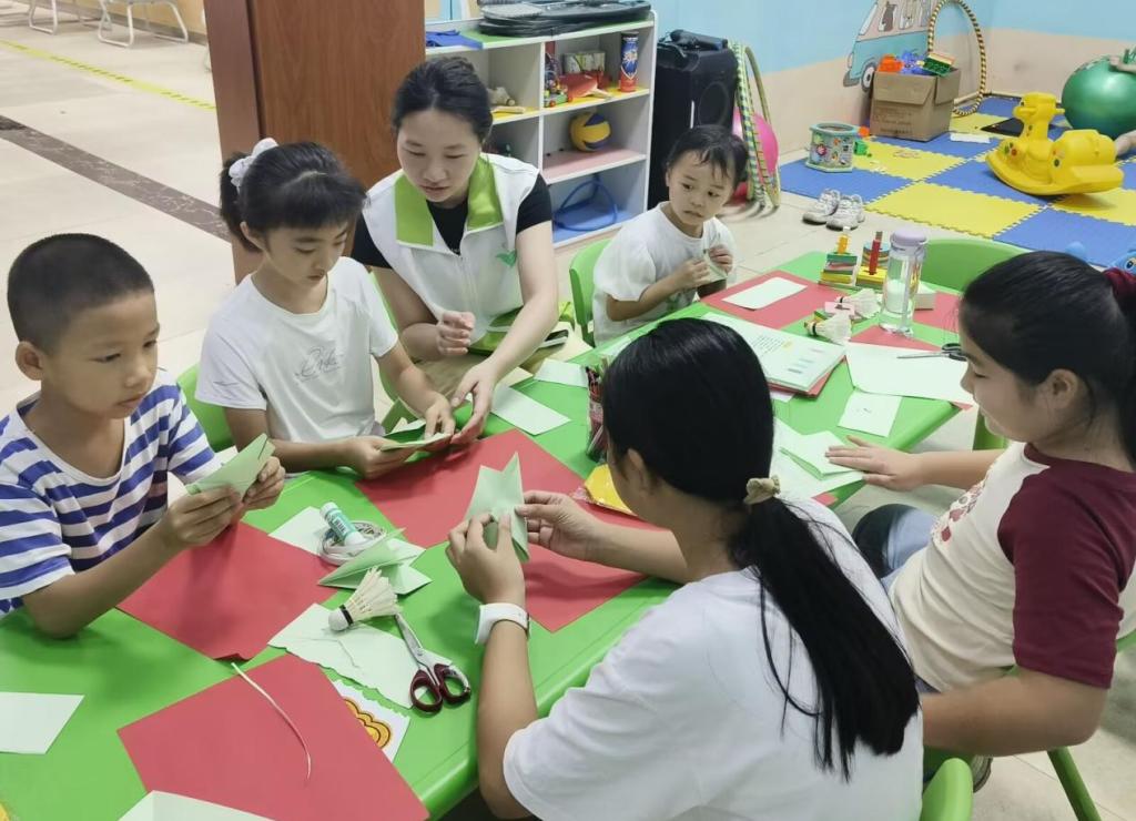 在讲解健康生活方式时,队员们通过绘本故事和“营养金字塔”游戏,引导孩子们树立正确的饮食观念。孩子们积极参与游戏,在搭建“营养金字塔”的过程中,深刻理解了各种食物的营养价值和合理搭配的重要性。急救课上,队员们现场示范海姆立克急救法和伤口包扎的正确方法,孩子们纷纷踊跃参与练习,现场气氛热烈非凡。课后,队员们化身“临时老师”,陪伴孩子们进行涂鸦、拼图和剪纸等游戏,在欢声笑语中巩固健康理念。