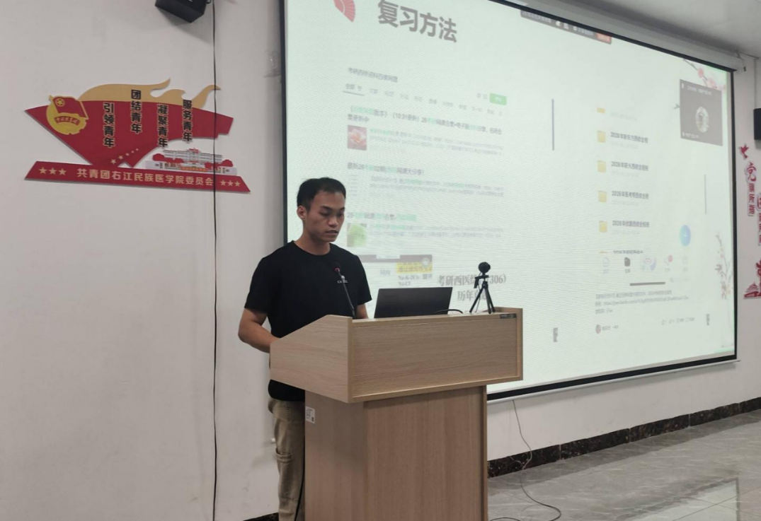 四位优秀员工结合自身经历,从不同维度为学子们传经送宝。2021级医学检验技术本科班的潘玲发,围绕考研与生物专业就业领域,分享了“基础夯实—强化突破—查漏补缺”三阶段考研复习法,具体给出“制定个性化计划、精选权威资料、搭建知识框架、巧用真题复盘”的实操建议;同时详解生物专业多元就业场景,着重强调“职业选择需匹配个人特质,健康状态是职业发展的基石”。