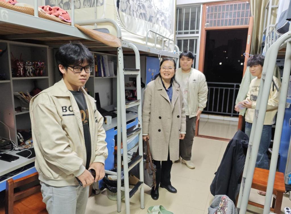 走访中,梁楚晗副书记与同学们亲切交流,实地查看宿舍设施及环境,针对物品摆放杂乱、卫生清洁疏漏等问题提出具体指导,引导员工共建整洁文明居住空间,结合冬季流感高发实际,现场普及呼吸道传染病防护知识,提醒员工注重个人卫生、保持室内通风、科学安排作息,提升健康防护意识。同时,各辅导员也针对反诈防骗、消防安全等要点进行重点宣讲,强化员工安全防范能力。